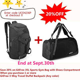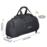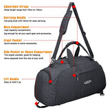 - SIZE and STRUCTURE: Measurements: 23 x 10 x 12 inch (58 x 25 x 28 cm) with 40L Capacity. One huge compartment (with a mesh zipper pocket inside) with a 2-way zipper's U-shaped opening. One Upgraded Shoes Compartment ventilated to keep your shoes and dirty gear separate (reference max shoes size: 12). One re-designed Side Pocket to hold your water bottle, notebooks, keys, cellphone, etc. The front zipped pocket can hold your ipad/kindle.