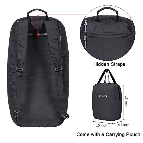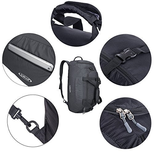- LIGHTWEIGHT AND COMFORTABLE: 600g, breathable mesh and padded shoulder straps. Easy to adjust the length and lock firmly. High quality two-way zipper goes smoothly. Comes with a carrying pouch, you can compact Duffel Bag as an extra bag or store it without taking up too much space, or use the carrying pouch as a hand bag.