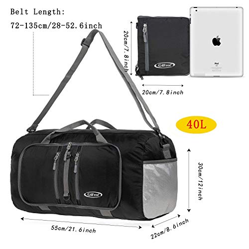 G4Free Foldable Travel Duffle Bag Lightweight 22 Inch for Luggage, Sports, Gym(Black)