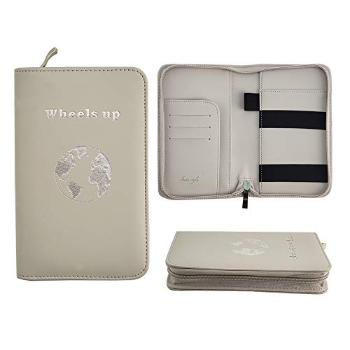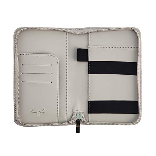- STRESS FREE TRAVEL WITH BUILT IN SECURITY: Equipped with blocking material, which blocks RFID signals and protects the valuable private information stored on RFID chips from unauthorized scans. This trendy zip up case/wallet features three credit card slots, a passport compartment and plenty of space for money and travel documents. It even includes stretch bands that hold your cell phone while it's charging.