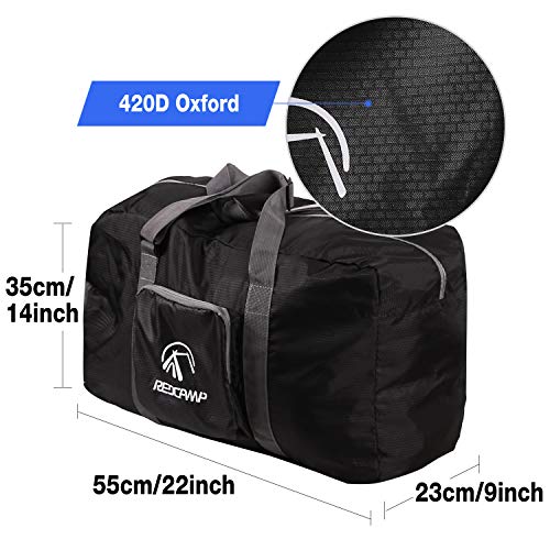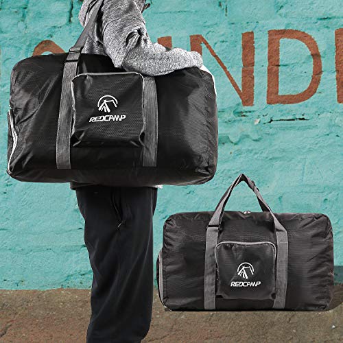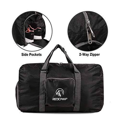 - ▶POCKETS: The REDCAMP duffel bag is equipped with two outside pockets with 1 zippered pocket on one side and 1 zippered pocket in front. There is also a special suitcase band to conveniently carry the bag on top of your rolling suitcase