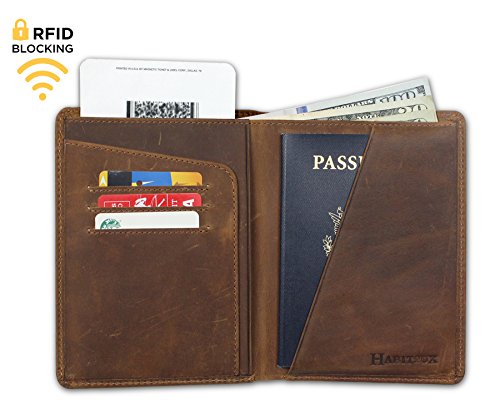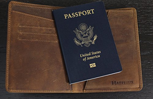 Details: Genuine Crazy Horse Leather RFID Blocking Travel Passport Wallet / Bifold Wallet: