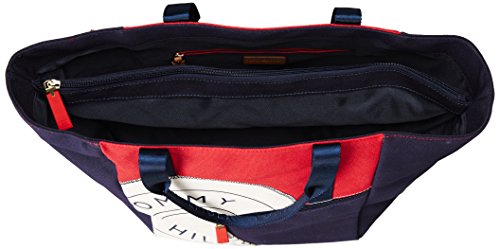Details: Sporty-chic style from Tommy Hilfiger®. Woven handbag features a striped pattern throughout. No closure. Dual carry handles. Exterior flaunts zip pocket and large brand logo at front, polished hardware, and tonal stitching. Flat base. Lined interior features center zip compartment, back wall zip pocket, and two slip pockets for organization. Imported. Measurements: Bottom Width: 14 in Depth: 6 in Height: 14 in Strap Length: 20 in Strap Drop: 8 1⁄2 in Weight: 1 lb 9 oz This product may have a manufacturer's warranty. Please visit the manufacturer's website or contact us at warranty@support.zappos.com for full manufacturer warranty details.