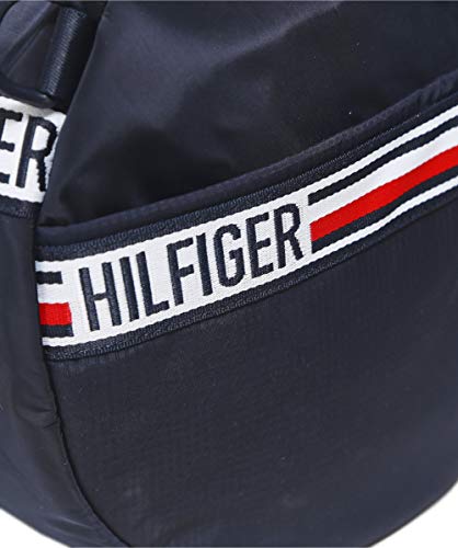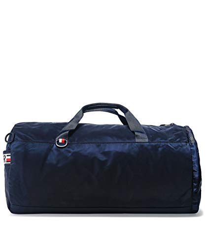 Details: Discreetly framed with signature tape, this spacious duffle bag features Tommy Hilfiger branding for standout style. Highlights Textile D-ring buckle on front and side Zip closure Top handles Detachable adjustable shoulder strap One main compartment One interior zipped pocket One front zipped pocket One side zipped pocket One side slot pocket Signature tape on front and side Signature tape D-ring Tommy Hilfiger flag patch on front Shape & fit 58.5 x 29 x 29cm