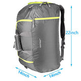 - 3. Size and Structure: Measurements: 22 x 14 x 14 inch (57x 35 x 35 cm) with 50L Capacity. One huge compartment with a 2-way zipper's U-shaped opening. 2 sides Shoes Compartment ventilated to keep your shoes and dirty gear separate.