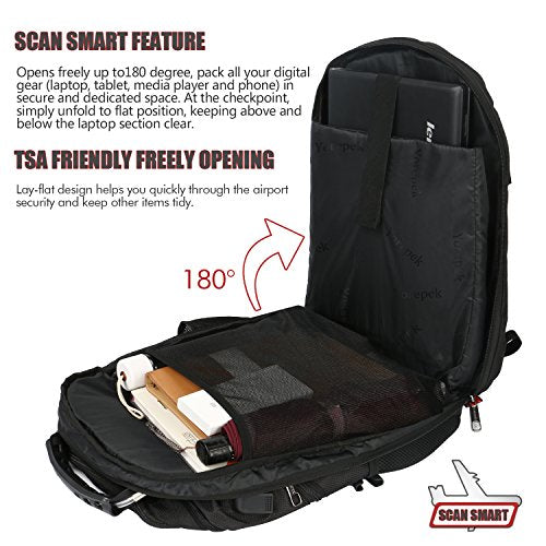 - TSA FRIENDLY & MULTIPURPOSE: At checkpoint, unfolds freely 90-180 degree making you quickly through the airport security and keep other items tidy, exclusive designed for AIRPLANE TRAVEL. The laptop backapck can be served as everyday backpack,college or high school bag, professional backpack for laptop or daily use at anywhere for weekend getaway, occasional travel,overnight camping,hiking with this large capacity usb charging pack
