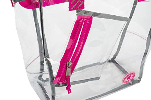 - Heavy duty PVC tote bag is completely see-through on all sides.