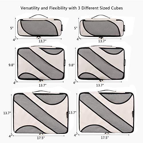 - WORRY FREE LIFETIME WARRANTY)6 Packing Cubes:6 Packing Cubes - 2* Large( 17.5" x 13.7" x 4") 2*Medium (13.7" x 9.8" x 4") 2 *slim (13.7"x5"x4")