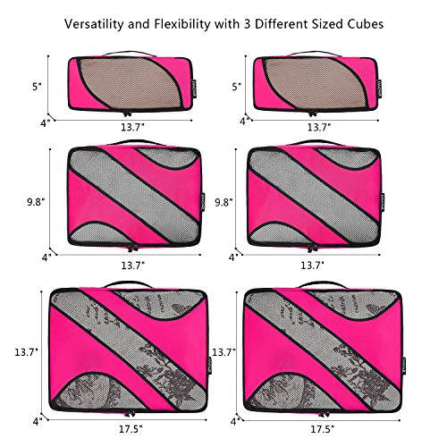 - AVOID OVERWEIGHT CHARGES - Your 6 piece set fits like a glove into most airline carry-on suitcases, tote, weekender, backpacks and duffel bags. Great way to keep organized for FAMILY breaks, BUSINESS travel, BACKPACKING, CAMPING, HIKING, RV, CRUISE holidays & SADDLEBAGS. Take 1 cube with you as a carry-on item to reduce weight on checked-in luggage.