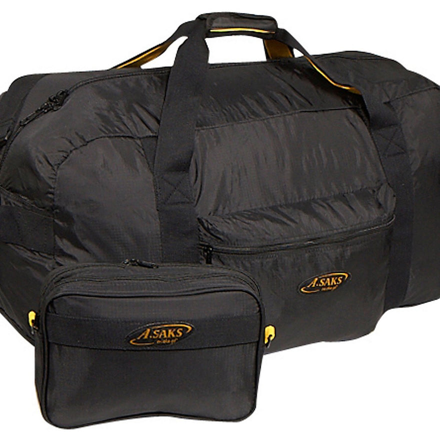 Carry your light travel or your outdoor adventure necessities in hands-free comfort and style in the A. Saks 30" Lightweight Folding Duffel. This lightweight, durable, and expandable nylon duffel bag folds up into its own compact zippered pouch for storage when it's not being used, and it boasts a roomy, wide-mouthed, zippered main compartment with plenty of room for your clothing, shoes, accessories, and gear. A front gusseted compartment provides additional storage space, and the A. Saks 30" Lightweight Folding Duffel comes with both double handles and a padded, adjustable shoulder strap for carrying comfort and versatility.
