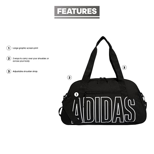 Details: This duffel bag is designed to hold everything you need for the gym or studio. it's made of durable woven fabric. the adjustable strap allows you to carry it across your body or on your shoulder.