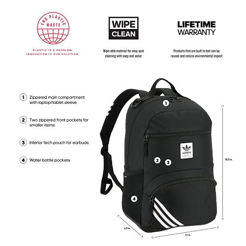 Details: You're well equipped for the gym or school when you carry this adidas backpack. it has an inner laptop sleeve and a tech pouch for earbuds to help keep you connected. made with recycled content, it's built to last.