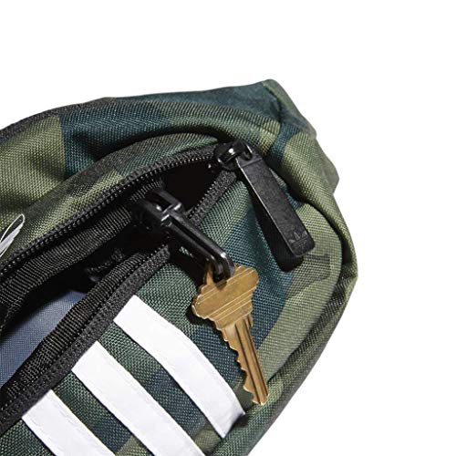 Details: Add 3-stripes style to everything you do. this waist pack keeps the basics close and shares your love of sport with a classic adidas look. the small zip pocket includes a built-in key fob for added security.