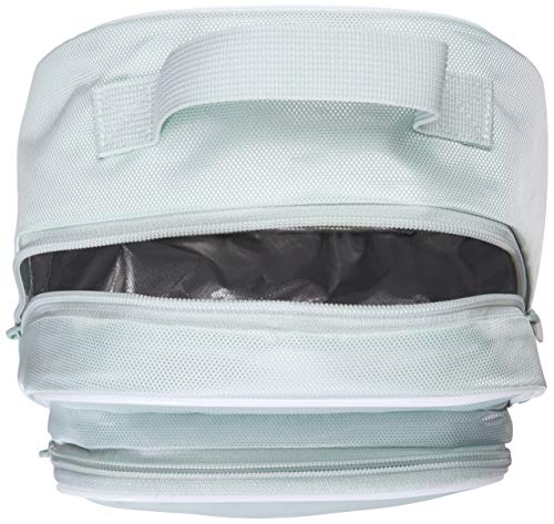 Details: This lunch bag will keep your goods cold and fresh. zippered main compartment, mesh on the back and a small lined front pocket. stacked trefoil logo branding and piping complete the style.