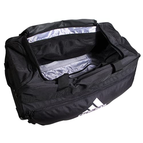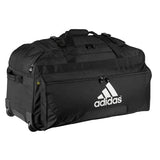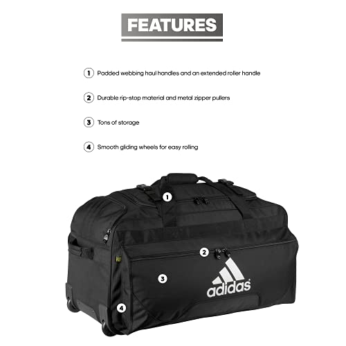 Details: Product Description Large enough to carry both team equipment as well as clothing during an away game or travel. with a lifetime warranty, this bag rolls smoothly and is as durable as they come. Amazon.com When you've got to get the gear to the game, the durable adidas Team wheel bag is the way to go. Compression straps give your load extra support, while padded handles on top and bottom make traveling with team gear a breeze. From the Manufacturer adidas is a name that stands for excellence in all sectors of sport around the globe. The vision of company founder Adolf Dassler has become a reality, and his corporate philosophy has been the guiding principle for successor generations. The idea was as simple as it was brilliant: to provide every athlete with the best possible equipment. It all began in 1920, when Adi Dassler made his first shoes using the few materials available after the First World War. Today, the adidas product range extends from shoes, apparel, and accessories for basketball, soccer, fitness and training to adventure, trail and golf.