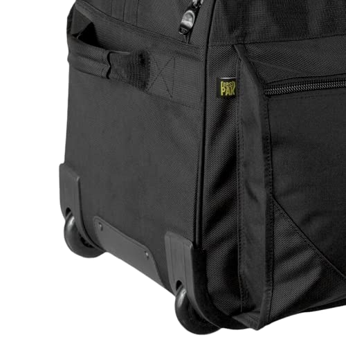 - Padded webbing haul handles and an extended roller handle.