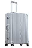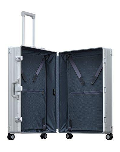 Details: Aleon 32 Marco Traveler has the capacity of the traditional footlocker trunk, with the modern conveniences of todays wheel technology. Manufactured using durable lightweight aircraft-grade aluminum, riveted assembly construction for strength, reinforced capped corners for additional protection. For additional security a frame closure is used, which has a rubber seal in conjunction with the 3 draw bolt TSA approved combination locks creates an extremely tight closure to keep moisture and grime out. A third center draw bolt TSA lock is used to help secure the entire frame closure. The telescoping handle system and dual track 360 degree swivel wheels provide greater mobility, and top and side handles assist for easy lifting. The interior is fully lined with a packing compression panel