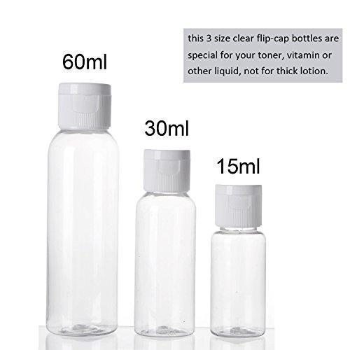 - ★VARIETY OF BOTTLES TO MEET DIFFERENT NEEDS - one 60ml (2 oz.) pump bottle, one 60ml (2 oz.) flip-cap bottle, one 30ml (1 oz.) spray bottle, one 30ml (1 oz.) flip-cap bottle, one 15ml (0.5 oz) flip-cap bottle, one 30ml suqeeze bottle, two 0.5 oz. cream jars, two 0.35 oz. cream jars, two 0.1 oz. cream jars, one pipette, one funnel, one spatula, one zip pouch