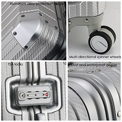 Details: Using 6-series aluminum-magnesium alloy (aviation level). Anodizing process, with corrosion resistance, stable performance characteristics. Luggage surface matte treatment, after 1000 degrees high temperature baking. To ensure that paint is not easy to fall off The suitcase passes the 100,000km roll test and the 1.5m drop test. All parts of the suitcase can be recycled and reused. Aluminum-magnesium alloy shell formed by the pressure of 40 tons of pressure, and then through 53 complex processes, hand-made CONSIDERATE REMINDING 1.Please do not overload your luggage or pack with sharp implements 2.Please do not load liquid items or fragile items 3.Luggage is not burglarproof so please do not put your money or valuable objects in to your luggage 4.In an uneven place, place the suitcase horizontally or lying down 5.The luggage is dustproof and splashproof 6.Please use a diluted neutral detergent to wipe, do not use soap, detergent and other strong alkali, strong acid chemicals 7.Please do not let your child contact the suitcase alone to avoid accidents 8.When you need to lift the luggage, use the main handle, do not use the drawbar 9.Please make sure the locks on the side are in the unlocked condition while you close the luggage 10.When you go up and down the stairs please do not use luggage wheels 11.Please do not step on or sit on the luggage 12.If the luggage is damaged during the shipping process, please contact the airline for compensation