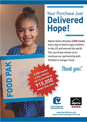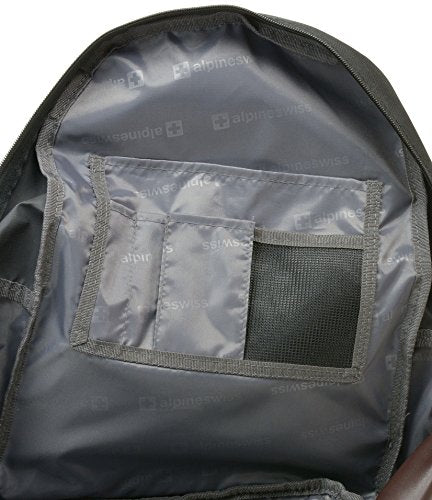 Details: Major School Backpack By: Alpine Swiss Product Features: 1 Year Manufacturer's Warranty By Alpine Swiss 1680 Denier Ballistic or PU Leather Reinforced Bottom for Durability Capacity: 1151.83 Cubic Inches Measures: 12.8" x 16.4" x 5.5" (W x H x D) Main Pocket Organizer 7.5" x 5.5" Featuring 3 pockets & 2 Pen Slots Self Mending Zippers MSRP: $34.50 Alpine Swiss donates 2500 meals every day to hungry children in the U.S. and around the world through our partnership with Children's Hunger Fund. These meals are hand delivered in a Food Pack, which will contain enough food to feed a family of 4-5 for a week to the homes of the needy by trained volunteers in their community, establishing relationships that foster genuine care. Your purchase fuels this effort! Thank you!