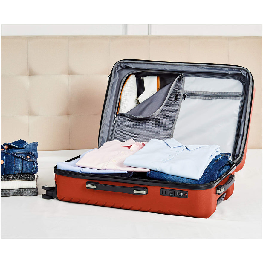 - Adjustable telescoping handle, comfort grip, recessed TSA lock, and 360-degree spinner wheels