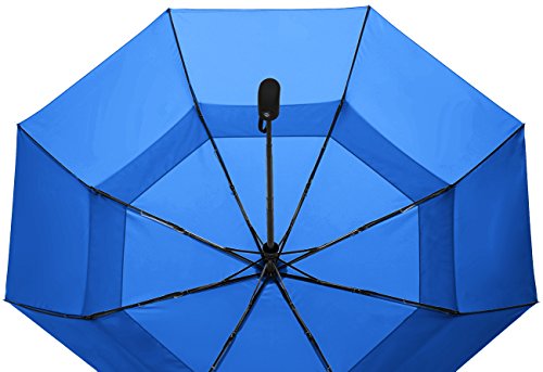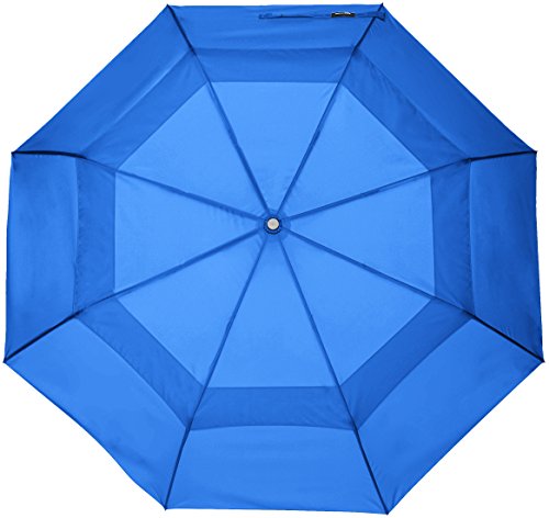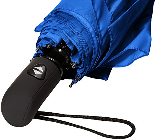 - Royal Blue, full-size travel umbrella closes to a compact size