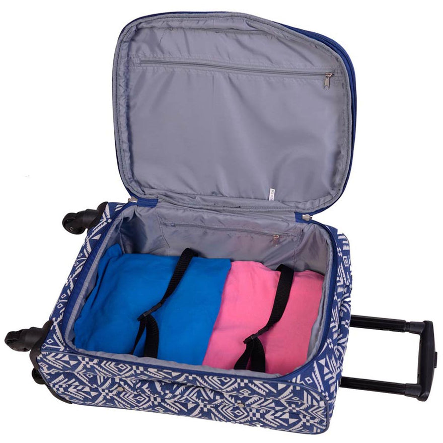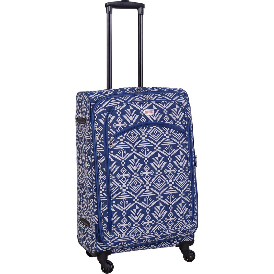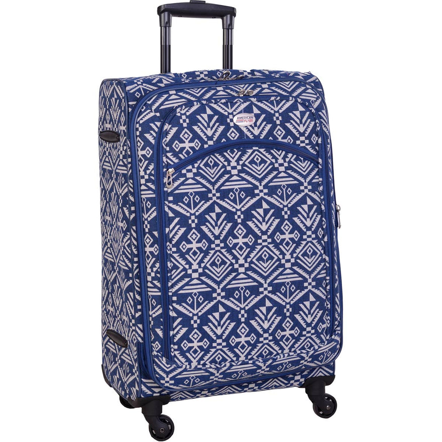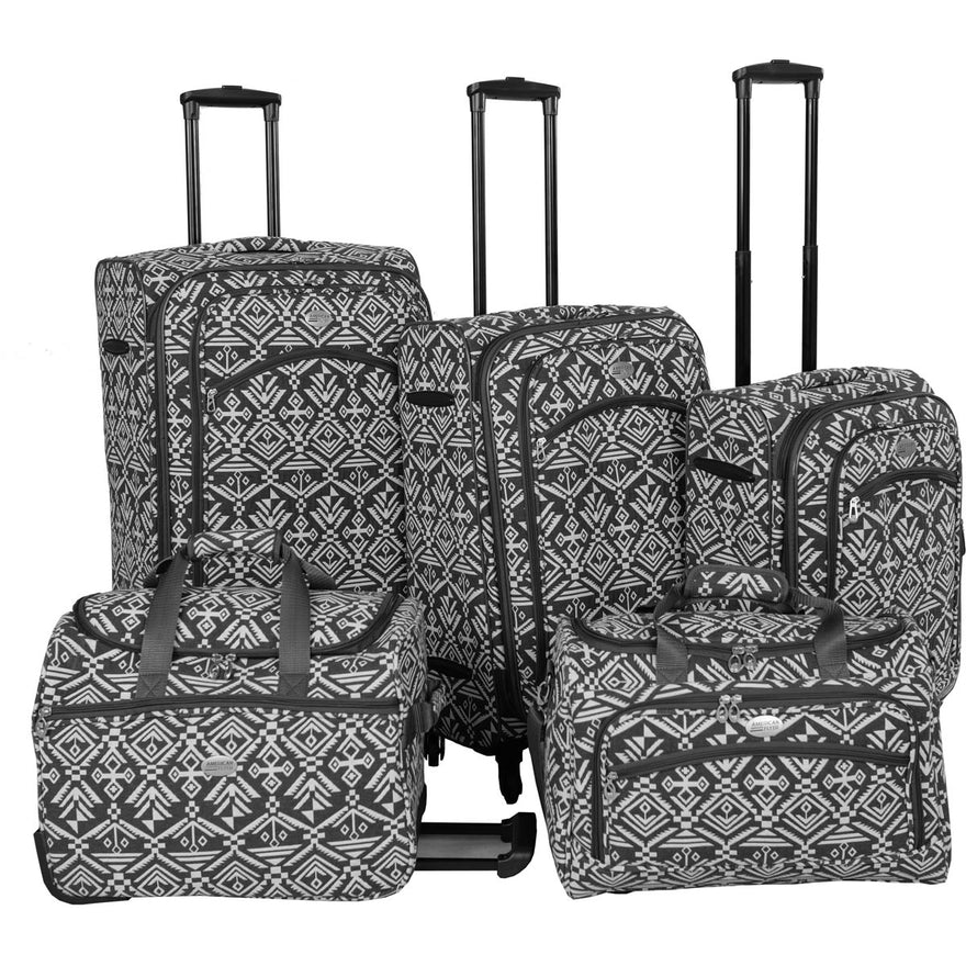 American Flyer 5-piece luggage set includes three spinner wheeled upright luggage, wheeled duffel and a personal carry-on duffel.