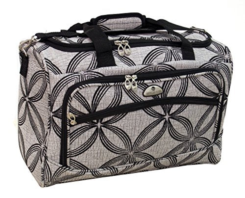 Details: For over 30 years, American Flyer luggage has been designing baggage that is classic, innovative and fashion forward, while being durable and practical American Flyer silver clover 5-piece spinner luggage set includes a 28 inch upright, 25 inch upright, 21 inch carry-on upright, carry-on wheeled duffel and personal bag each piece includes a fully lined interior for luxurious touch uprights include roomy exterior pockets for added storage and organization along with an interior zippered mesh pocket and shoe pockets for easy organization uprights also feature telescoping handles, top and side handles for easy mobility along with 4 spinner wheels for a smooth and easy roll duffel has a telescoping handle and u-zip opening for quick and easy packing all pieces include self-repairing, nylon zippers product comes in 2 year warranty