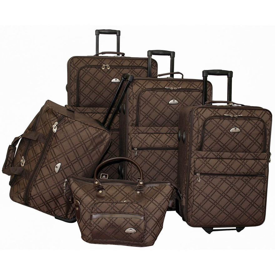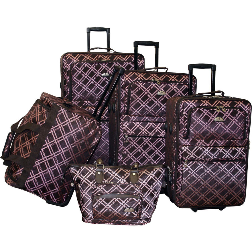The American Flyer luggage Pemberly Buckles 5 Piece Luggage set is easy to spot at the baggage claim, this trendy 5-piece suitcase set features rolling wheels and secure zipper closures.