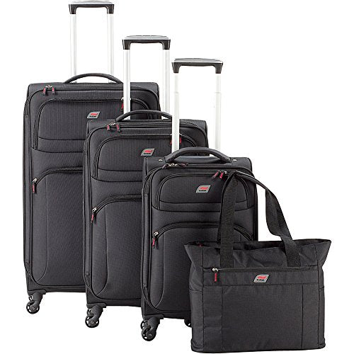 Details: Hyper-lite expandable spinner 4-piece luggage set; includes 29, 25, 20 and 16 tote.