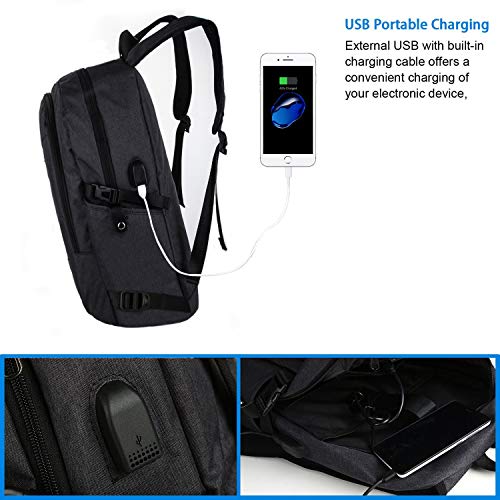 - Backpack with built in USB CHARGER Port outside and built in charging cable inside,this usb backpack offers you a more convenient way to charge your phone while walking/work. Please noted that backpack doesn't power itself, usb charging port only offers an easy access to charge