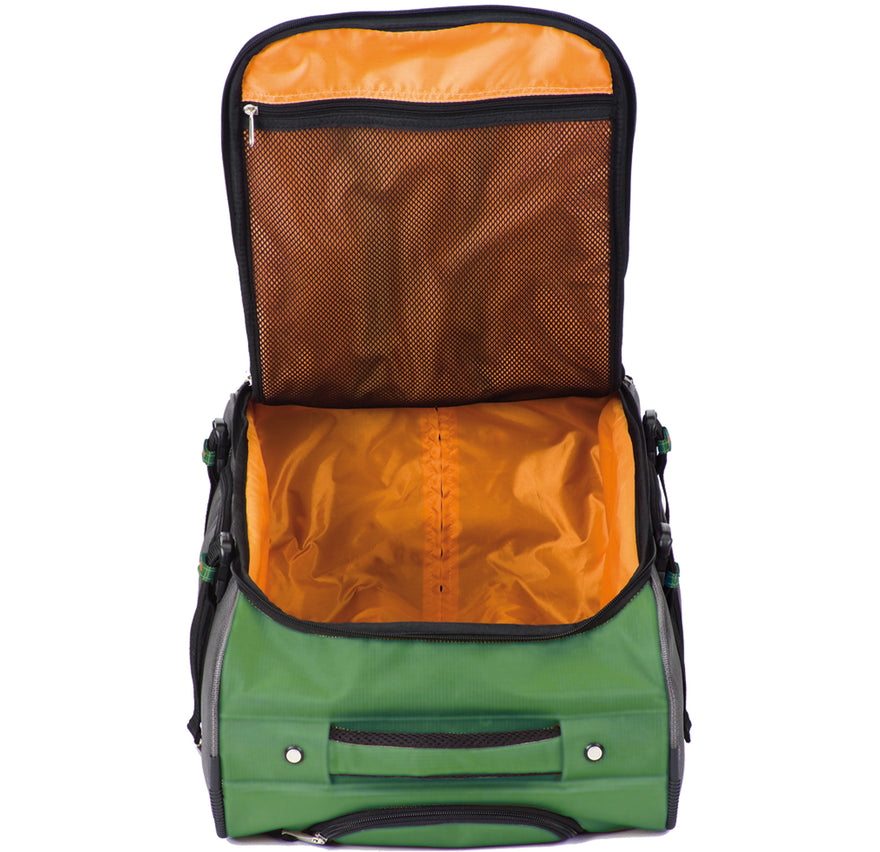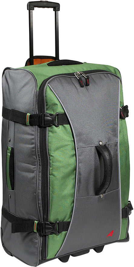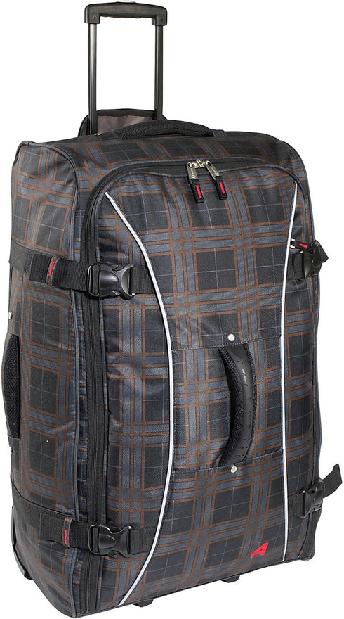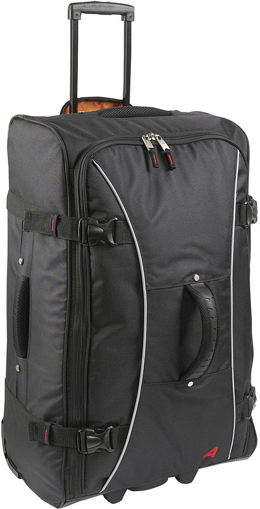 Pack your gear for your next journey in this hybrid travel bag from Athalon. The Athalon 29" Hybrid Travelers case is constructed from a durable poly/nylon fabric blend with accent piping for style, ergonomic handles for comfort, and in-line skate wheels for mobility. This bag blends the sporty styling of a duffel bag with the comfortable construction of a roller bag and has a lightweight design that you can carry by hand or wheel along behind you. The main compartment has a zip around top closure and a fully lined interior with inside mesh pockets for organization. Other features of this case feature top, side, and front carry handles and front feet that allow the bag to stand up on its own.