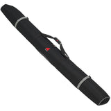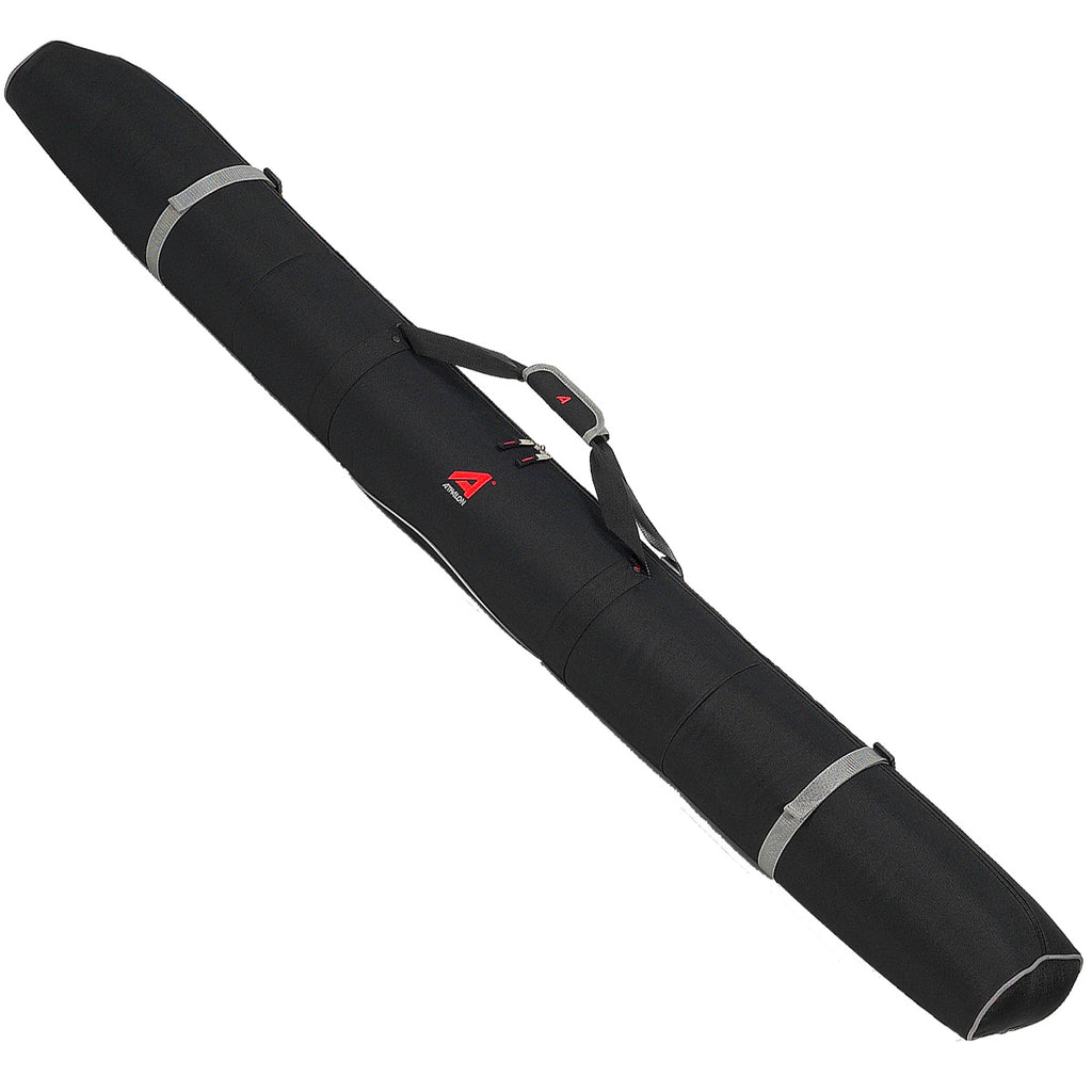 Head to the mountain with two pair of skis stored inside this stylish and protective ski bag from Athalon. The Athalon Double Ski Bag - Padded - 180cm features a high density poly fabric exterior with waterproof backing, a fully padded interior, self-healing nylon coil zippers, and dual comfort grip handles that make it easy to lift and carry. The interior is padded from end to end and offers enough space to hold two pair of skis up to 180cm. Adjustable cinch straps on the outside keep your skis firmly secured inside while an Athalon logo on the side adds a decorative touch.