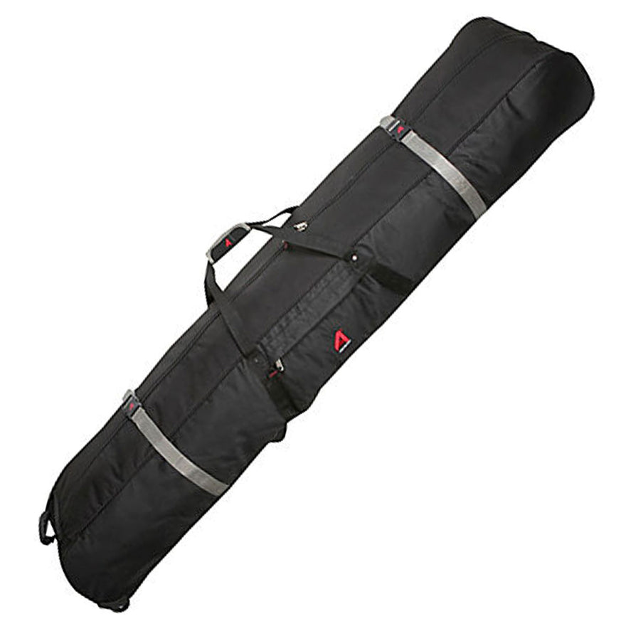 Stow your gear for your next snow adventure in this streamlined winter sports bag. The Athalon Multi Use Wheeling Ski/Snowboard Bag Padded - 185 cm is constructed from durable, high density polyester with waterproof backing, a full lining, and a padded interior. Hit the mountain with this functional bag that is roomy enough to hold two sets of skis and one snowboard or three sets of skis. This convenient wheeled bag has a comfort grip handle for easy carrying, self-healing nylon zippers for security, and locking zipper pulls so you can travel securely knowing your important gear is safe inside.