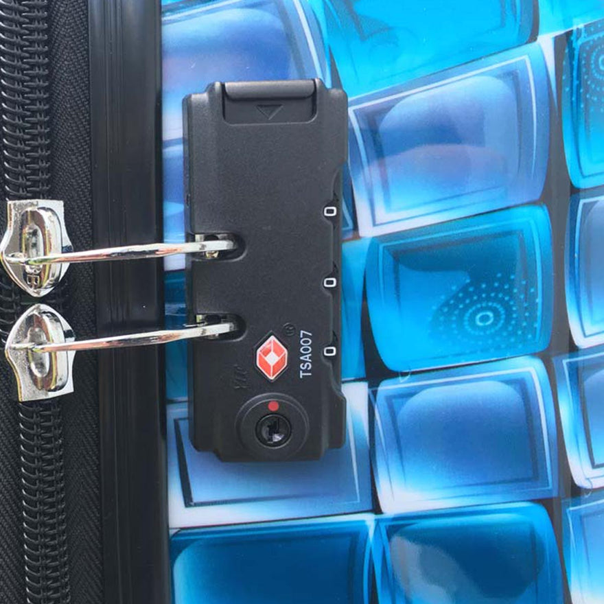The 3-D Blue collection is made of a PC composite for durability while keeping each case ultra lightweight. Never find yourself standing at the carousal wondering which black bag is yours. This beautiful 3-D design is sure to turn heads and stand out from the standard black or blue luggage. High fashioned designer print, color pop interiors, and color matched wheels make the ATM 3-D Luggage collection stand apart from the rest.