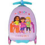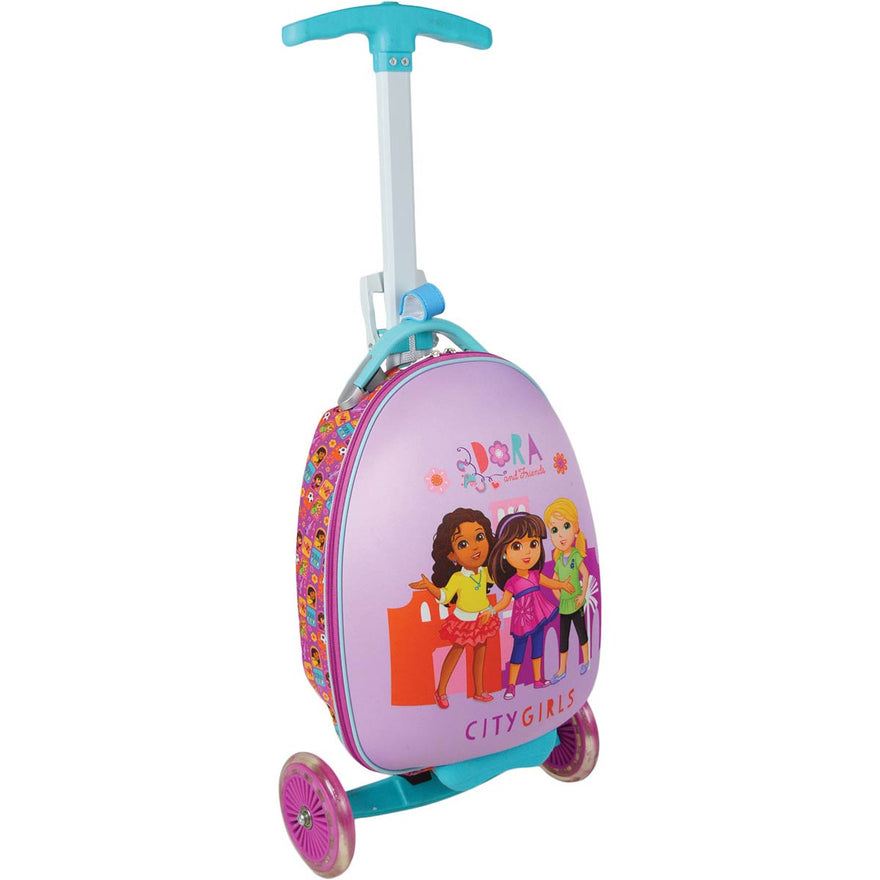 This lightweight Dora amp; Friends Scootie - City Girls is made of a polycarbonate composite allowing it to not only be lightweight, but very durable. Featuring your child's favorite Nickelodeon characters printed on the exterior, these are not only fun, but extreamly practicle. Approved carry on size allows your child's items to be packed away and stowed on board with you. Make the airport just as exciting for them with these ride-on travel cases. Choose from many of your favorite Nickelodeaon characters.