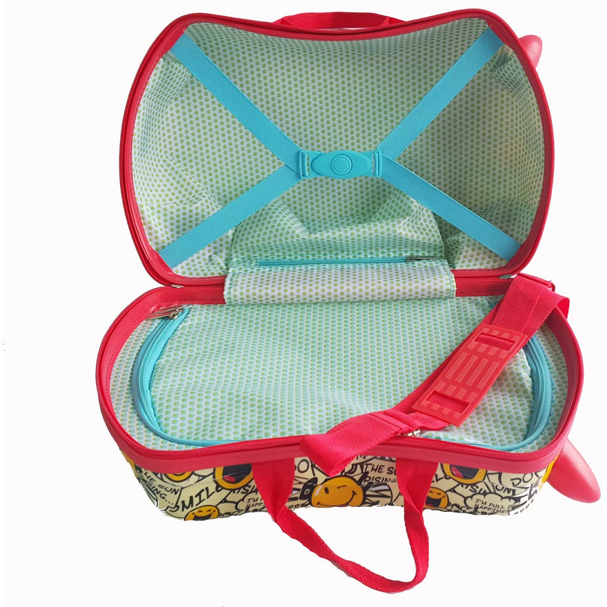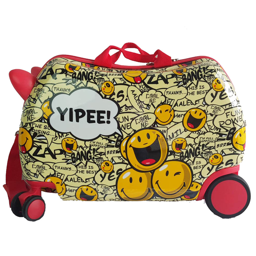 Let your kids get in on everything that is Smiley. Presented by ATM luggage ... this lightweight Smiley cruizer - Yippee is made of a polycarbonate composite allowing it to not only be lightweight, but very durable. Featuring Smiley iconic logoing on the exterior, these are not only fun, but extreamly practicle. Approved carry on size allows your child's items to be packed away and stowed on board with you. Make the airport just as exciting for them with these ride-on travel cases.