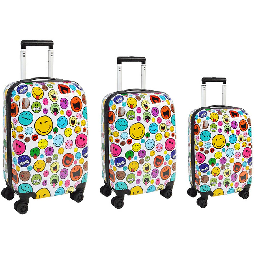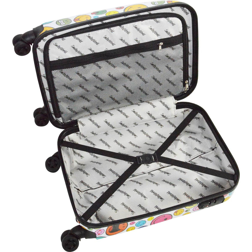 This lightweight Smiley World Celebration 3 Piece Spinner Set is made of a polycarbonate composite allowing it to not only be lightweight, but very durable. With it's dual caster multi-directional spinner wheels, all the weight of your packed case is off the wrist allowing for easy mobility in any direction.