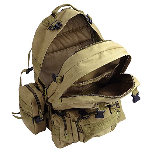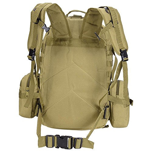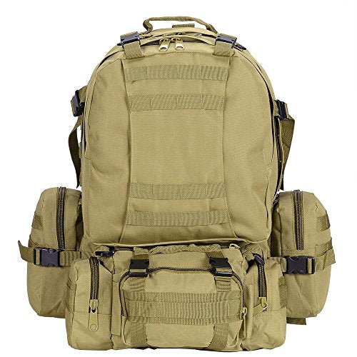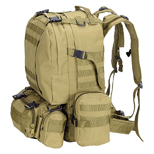 - This camping bag is ideal and convenient for your outdoor activities.Bigger size with more storage space. With 3 detachable molle pouches attached on front and two sides.