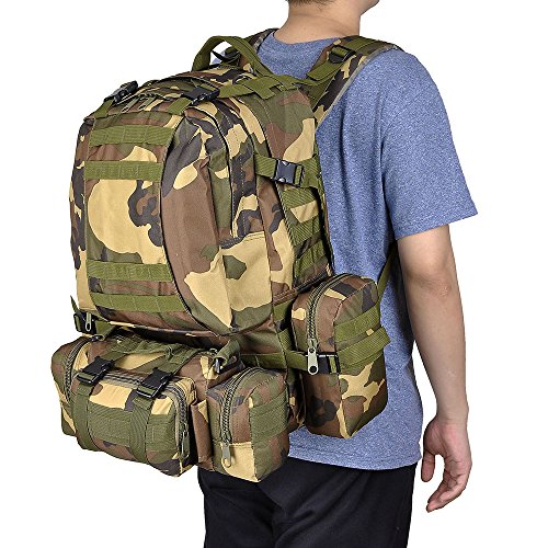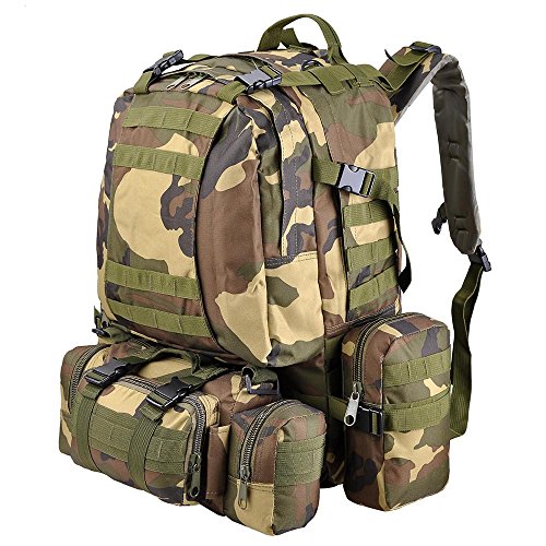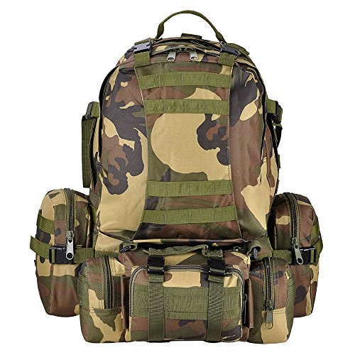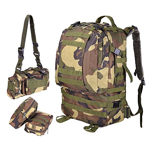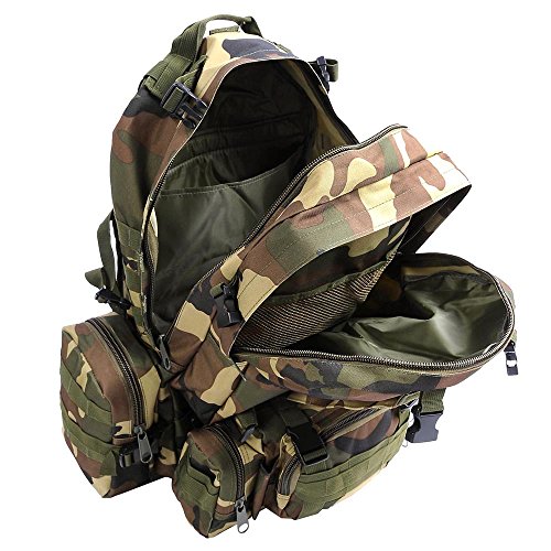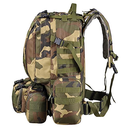 - This camping bag is ideal and convenient for your outdoor activities.Bigger size with more storage space. With 3 detachable molle pouches attached on front and two sides.