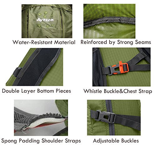 Details: Ayezon Water-Resistant Lightweight Packable Backpack Daypack
