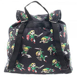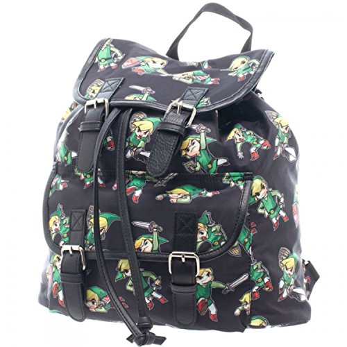 Details: This super awesome and sturdy Zelda backpack features prints of Link... features adjustable straps with snap closure (drawstring and buckle as well) and an exterior pocket with snap closure. Also includes a small interior zipper pocket.