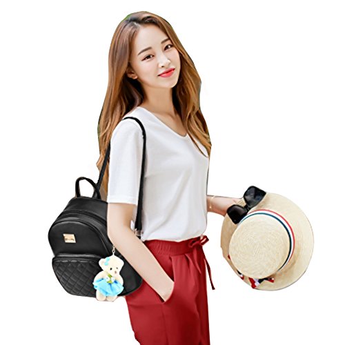 - Adjustable strap: You can have 3 carrying options: Single shoulder Bag,handbag,Cross Body bag. Mini size and cute and sweet design with a bear pendant. The fashion PU leather backpack is perfect for day-to-day use or occasional travel, shopping, school and a great gift choice.