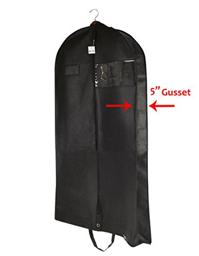 • KEEP YOUR CLOTHES PROTECTED FOR TRAVEL AND STORAGE: Our garment bags conveniently measure 26"x42"x5",bigger than the standard size garment bags that will store, carry, organize and protect all of your precious clothes! Also included a 5"gusset enabling you to carry several items in the same bag without wrinkling or overheating.
