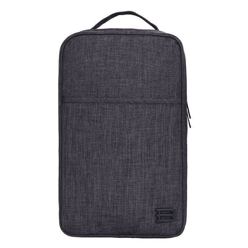 3.The front pocket for easily and quickly access to some small items. A mesh pocket with waterproof PVC on the bottom can store a pair of light slippers or flip flops, socks, shoes care etc.