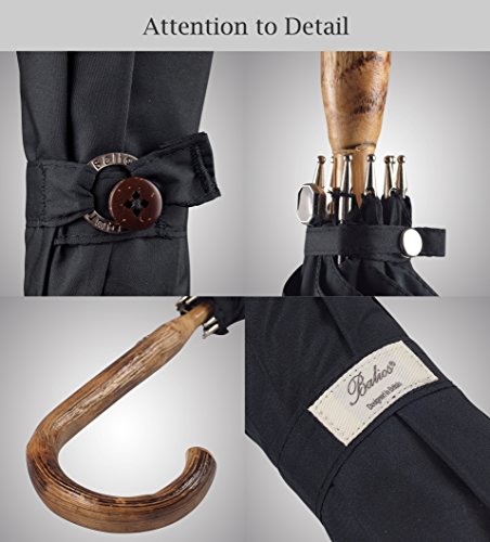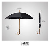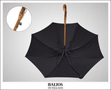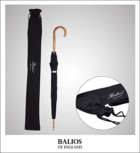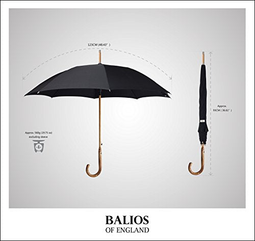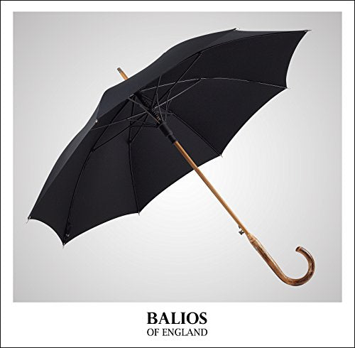 - ★Design: Jet Black ★ONE OF THE MOST CLASSIC ENGLISH DESIGNS + PURE AESTHETIC BEAUTY★--Based in Berkshire England, Balios is all about authentic quality and contemporary aesthetic beauty. Using the finest materials, this luxury stick umbrella with genuine chestnut wood crook handle is the perfect accessory for any elegant men who would like to maintain their sartorial standards during drizzly days.