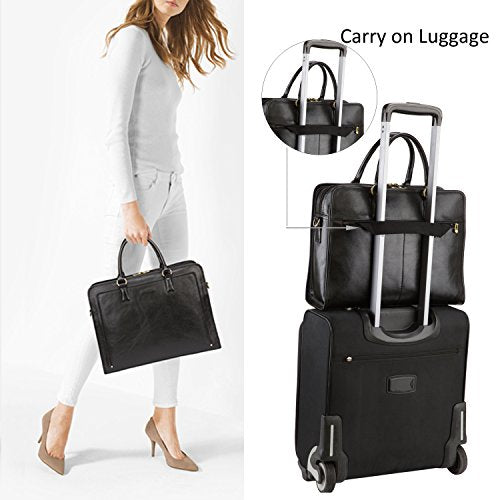 - Outside back pocket has a cotton fabric strap to slide over a suitcase handle and hold it in place while rolling through airport. Ideal bag for executive women and business men. Perfect for daily use or business travel/event. Suits as a business briefcase, work bag, messenger bag, laptop bag