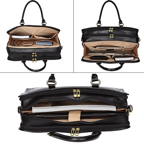 - Classic and professional briefcase look. Large capacity briefcase with 3 compartments design. Easily fit for your A4 folders and paperwork. Padded compartment with velcro is secure for protecting your 14 inch laptop. Dedicated pockets and slots for your wallet, pens, smart phone. Convenient U zipper closure to take your belongings more easily.