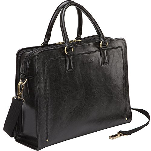 - 5 bottom studs makes this leather attache case stands upright on its own without falling over. Comfortable double handles drop 5.25" (13.3 cm). An extra detachable and adjustable shoulder strap, matched with zinc alloy metal