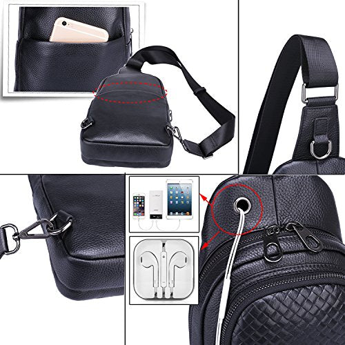 - Embossed Pattern Style: The leather for the front pocket part is uniquely designed with an exquisite embossed pattern style for decoration. Plus, on the top there's a unique earphone cord access design.